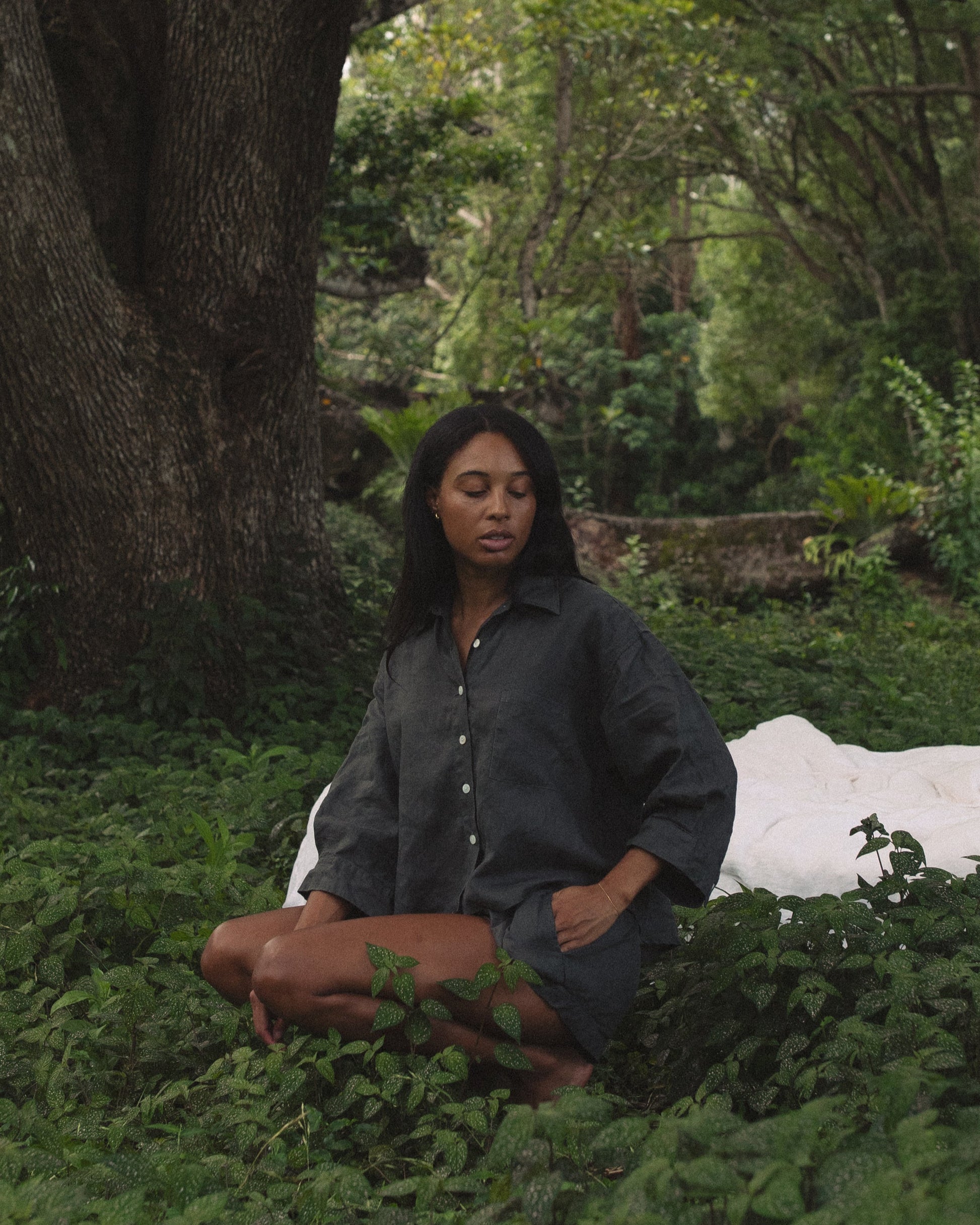 From our first sleep collection, the Bridie Sleep Set, is the essential you will reach for every day. Combining classic style with casual comfort, the relaxed button-up shirt features a wide collared neckline, button front opening, and wide elbow-length sleeves with buttons. Paired with shorts that have a scrunchy waistband for an effortless fit, this simple, soft set will fit naturally into your daily home routine.